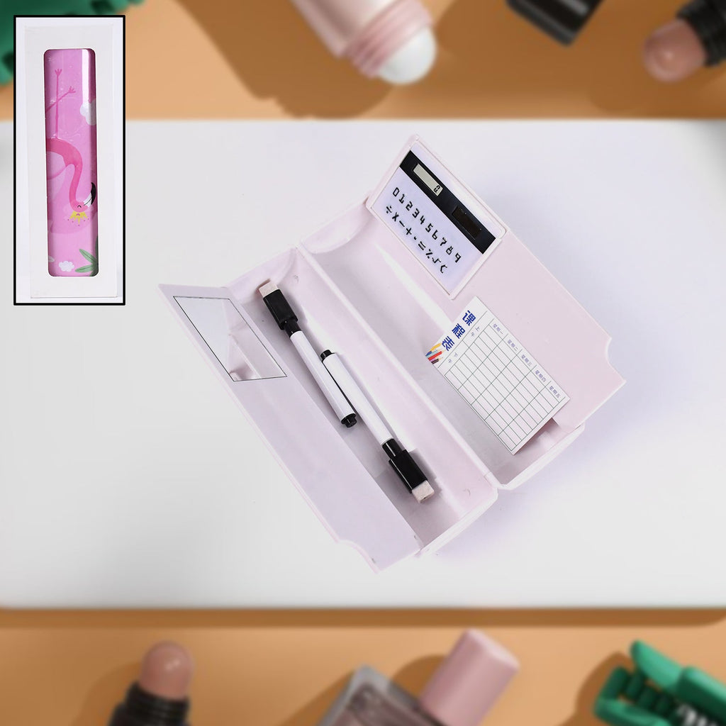 17609 8 in 1 Compass Box, Geometry Box 2 Compartment, Pencil Box with 1 Calculator, 1 Mirror, 2 in 1 Marker Pen With Eraser for Boys Art Plastic Pencil Box for Girls and Boys